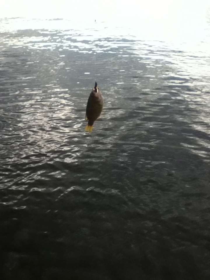 He also taught me how to “cast the line” in the water. In the process of his demonstration, his line got tangled in the water and had to reel it back in. When he did, THERE WAS A FISH ON HIS HOOK! Show off.
