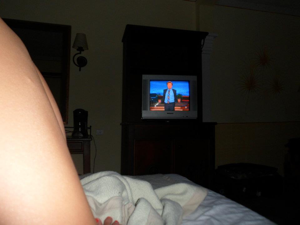 No matter how sick you feel those pink little pills will knock you out for HOURS. This is me staying in, watching Conan. You can tell I learned the hard way.