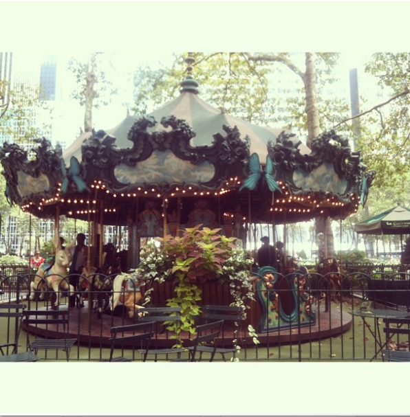I then headed to Bryant park. The sun was shining through the trees and a soft breeze filled the NYC air. It was such a beautiful summer day. I walked though the park, which didn’t have many people around since it was late morning and I took a seat right beside a carousel that softly played classical, romantic music. I opened my magazine, ate lunch and soaked in how wonderful I felt. Total bliss.