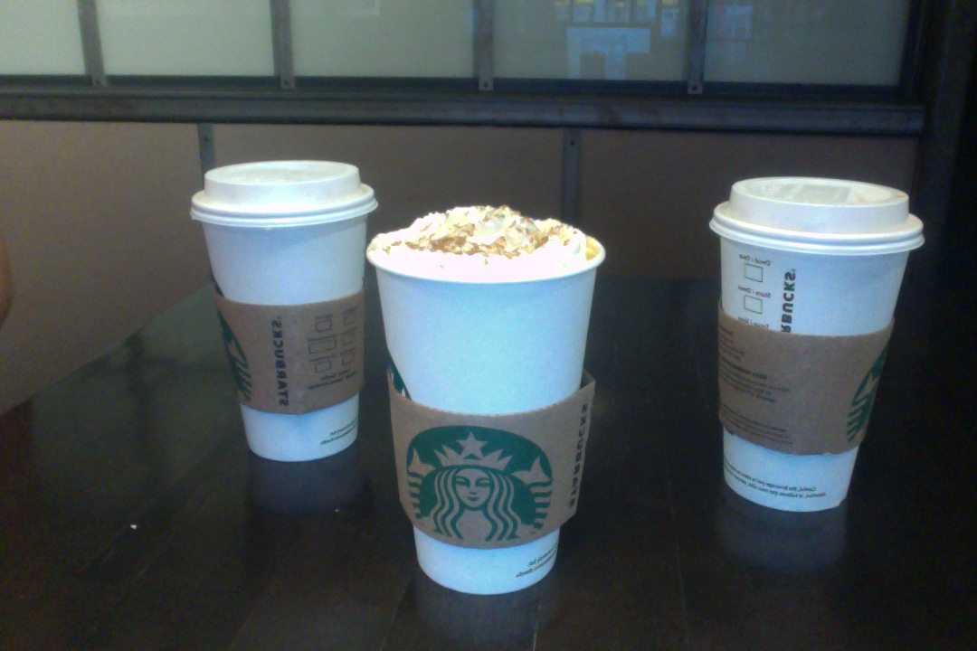 * Starbucks man #2 hands me over two lattes *