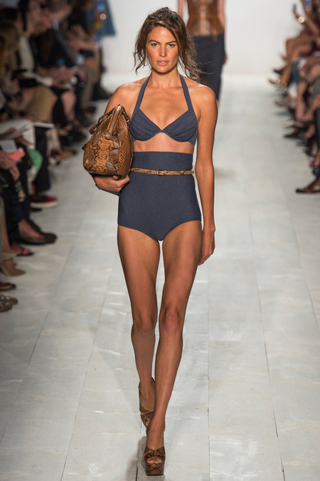 The entire collection was super sexy and modern (classic MK). This bathing suit is pure perfection. I am loving the dark heather grey and matching bag/belt/pumps that tied it all together.