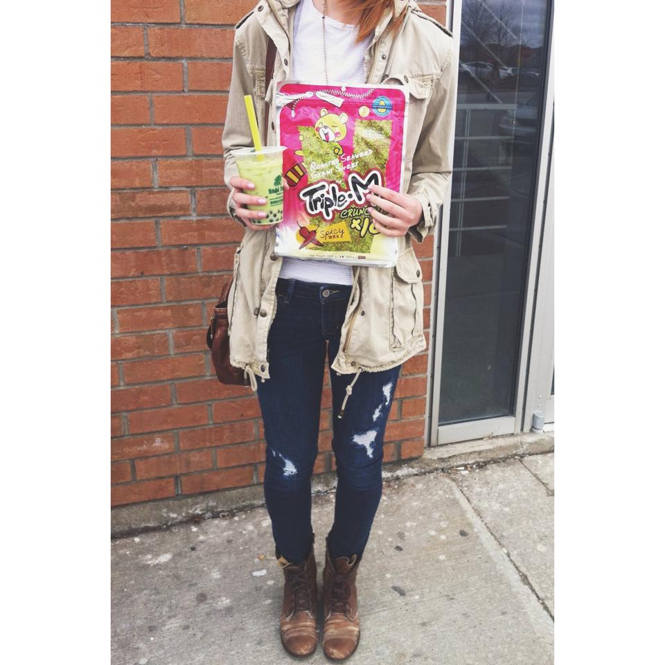 A couple of weeks later my friend Kristin and I went to Pacific Mall to browse around and pick up some phone cases. Along the way we bought honeydew bubble tea (MY FAV) and spicy roasted seaweed (a required taste, but I love it).