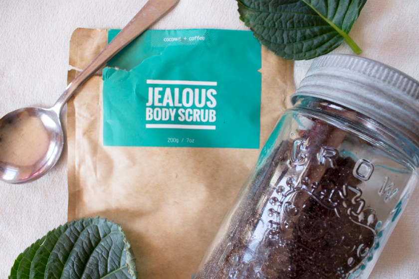 I recently learned the dirtier I got in the shower, the better. Of course I’m referring to a body scrub, you were thinking that too, right? Jealous Body Scrub hails from Vancouver and contains 100% natural ingredients such as Robusta coffee grounds, raw brown sugar, sea salt and cold pressed coconut oil. A must-have for anyone who wants to reduce the look of cellulite, stretch marks, eczema or if you’re looking for healthy, glowing skin in general (a.k.a everyone, ever). The scrub comes in a flat, brown paper bag you zip open and close like a regular Ziploc, and if you can’t place the brown bag anywhere in the shower or if the water is making the bag flimsy, pour the contents into a clear jar like I did! Now, let’s get into the dirty details. When I first opened Jealous Body Scrub, I instantly got a huge whiff of coffee. You wouldn’t know the difference if you held the scrub in one hand and a regular coffee grounds in the other. As a coffee …
